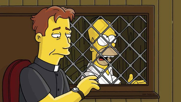 Bart tutustuu mukavaan katoliseen pappiin ja saa myös Homerin harkitsemaan uskontokunnan vaihdosta. Marge huolestuu asiasta.